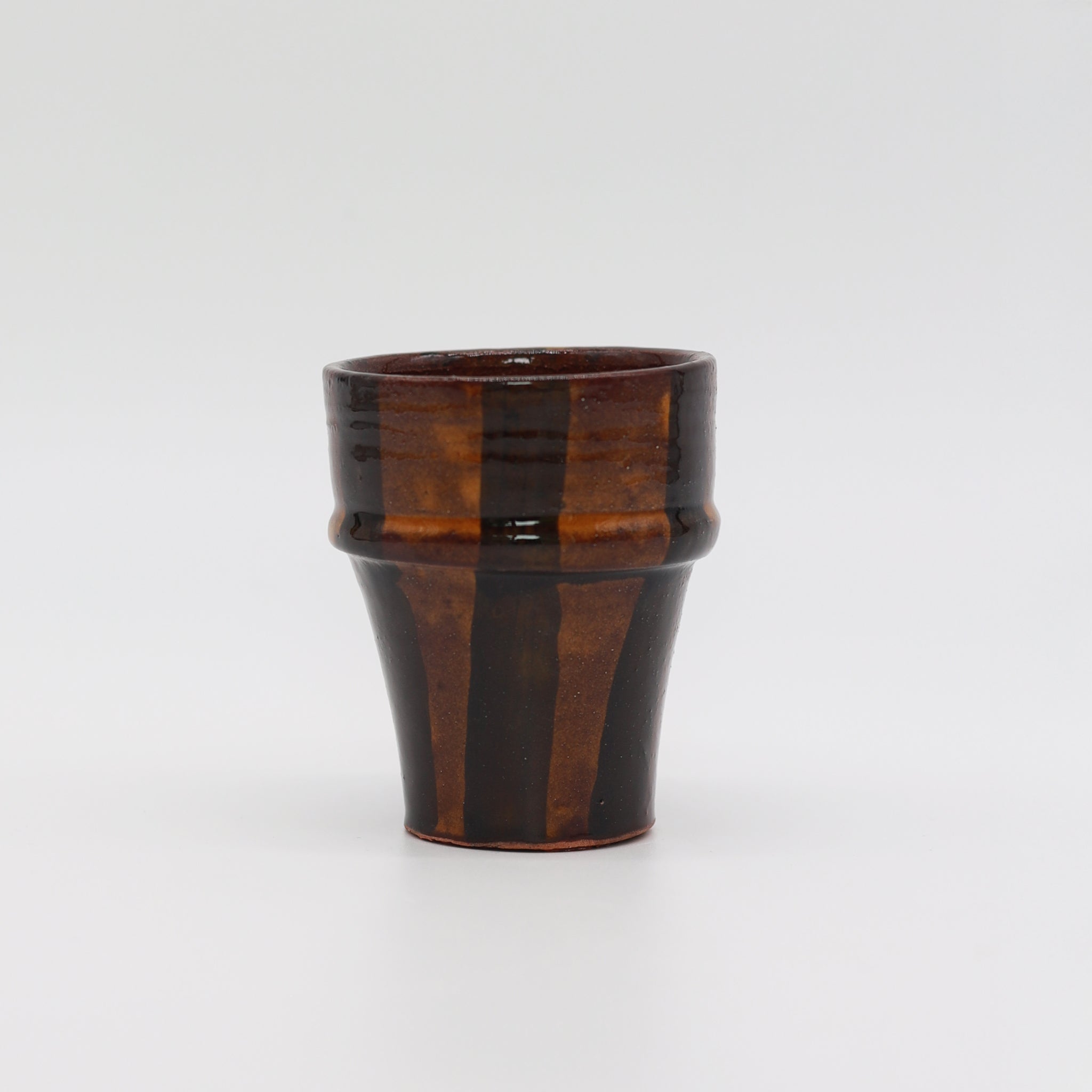 A little everyday joy, hand-thrown and hand-painted in Morocco. This ceramic cup features both dark and soft brown stripes, it's perfectly imperfect and full of character. Whether it’s a quiet espresso moment or an afternoon tea in the sun, this cup is made to be held, loved and lived with.