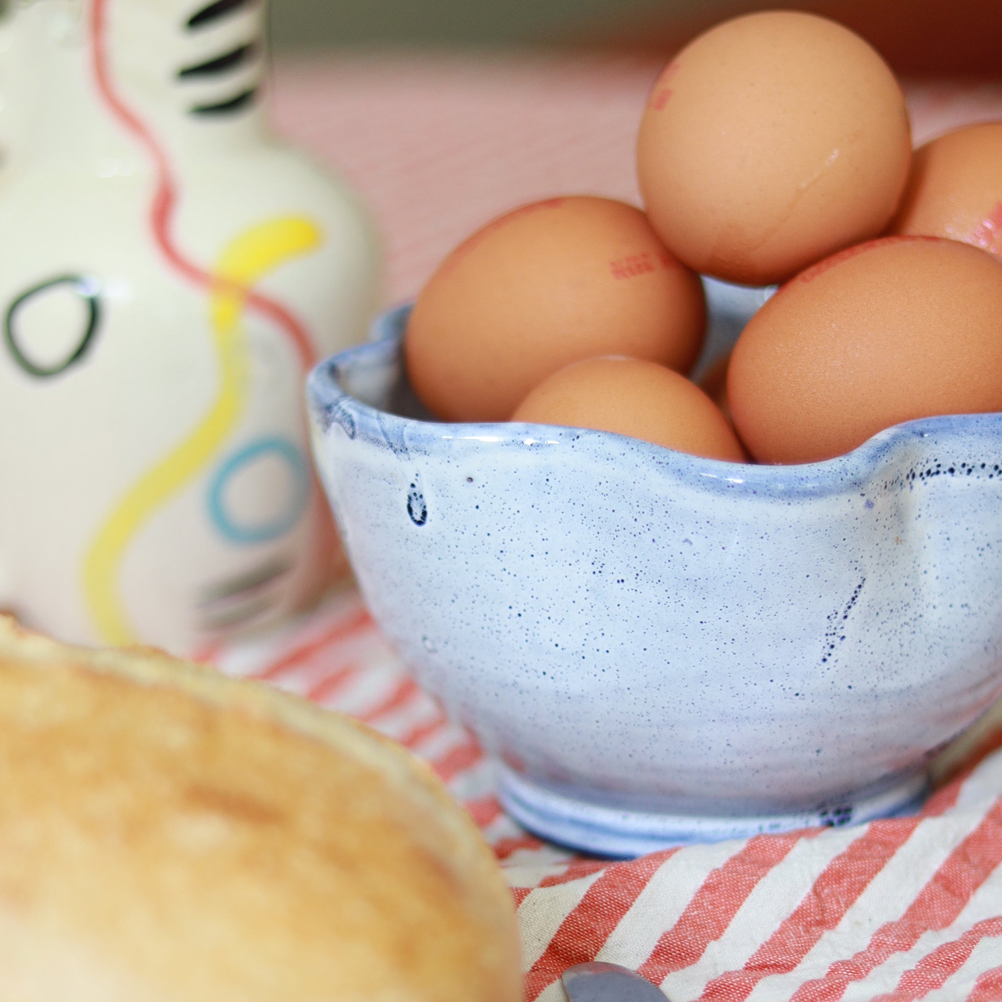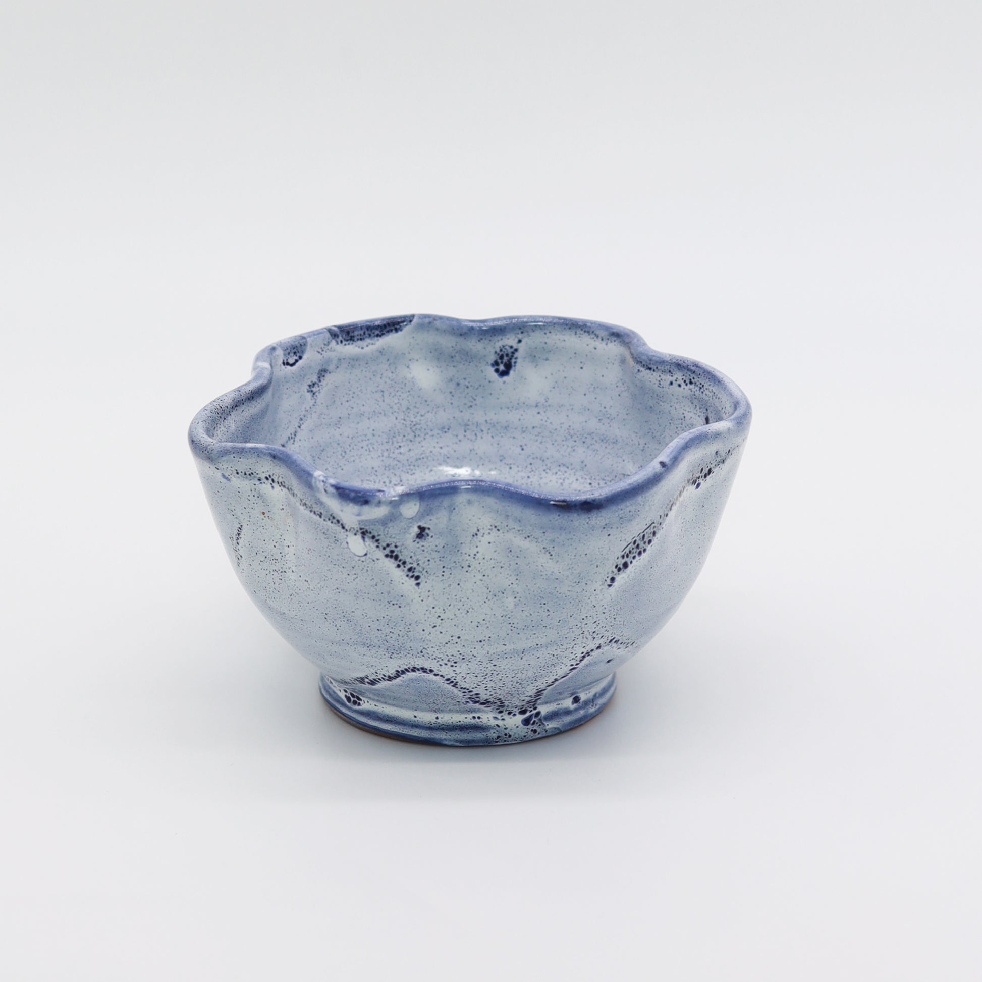 Delicate curves, calming colour, and an organic touch. This handmade Moroccan bowl features a scalloped edge and a serene, blue-speckled glaze that feels like a morning sky. Its soft, flowing form is both functional and decorative - ideal for serving snacks, fruit, or simply sitting pretty on an open shelf.